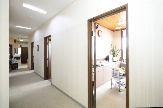 小さなお子様連れのご家族や車いすなどでご来院される方のために、院内はバリアフリーに対応しており、患者様が気兼ねなくお話をしてくださるように、診療室は完全個室としております。