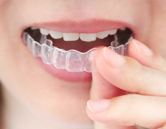 2. 透明なマウスピースを使用するため、装着中もほとんど目立ちません。接客業や人前に立つお仕事をされている方にもおすすめです。