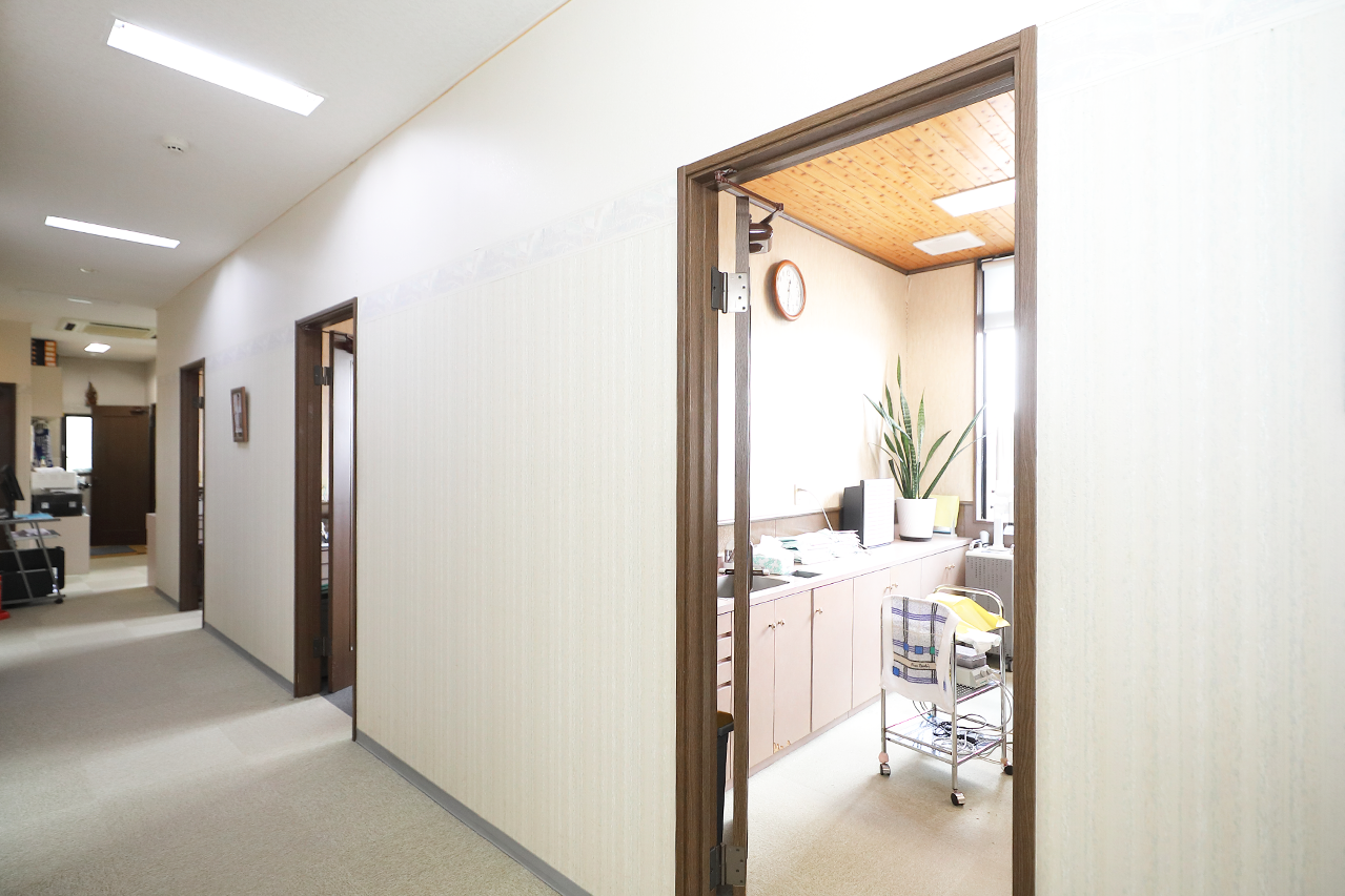 小さなお子様連れのご家族や車いすなどでご来院される方のために、院内はバリアフリーに対応しており、患者様が気兼ねなくお話をしてくださるように、診療室は完全個室としております。